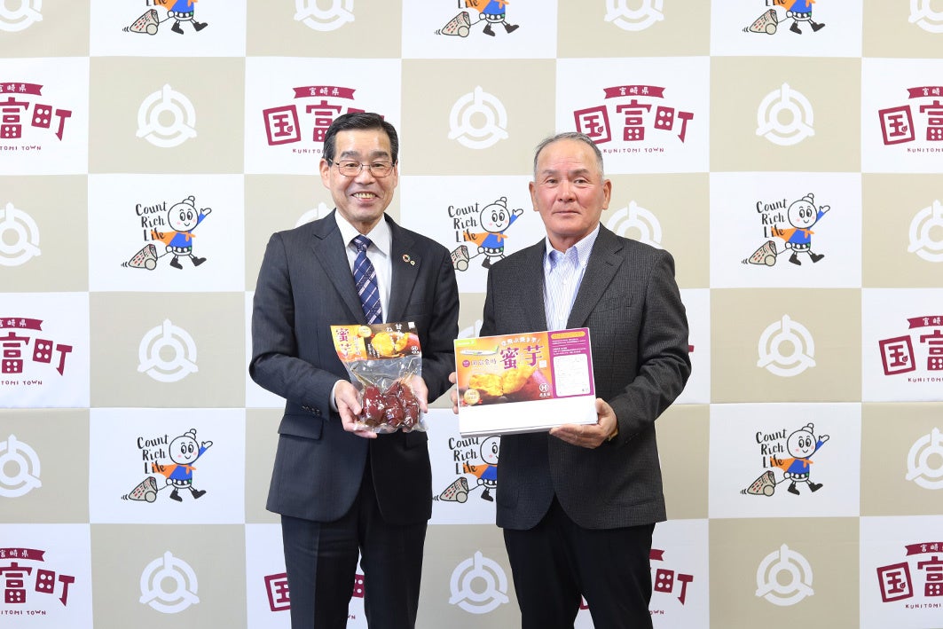 原農園代表の原裕次郎さんは「蜜芋は保存料、着色料、香料不使用で安心して美味しく食べてもらえる自信作。空飛ぶ焼き芋として、ここ国富町から全国にその美味しさと魅力をお届けできれば」と期待を寄せています。