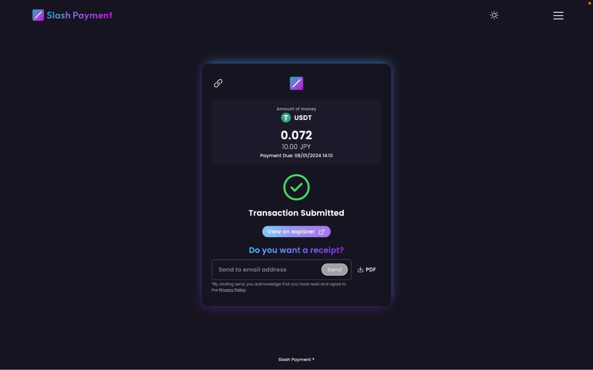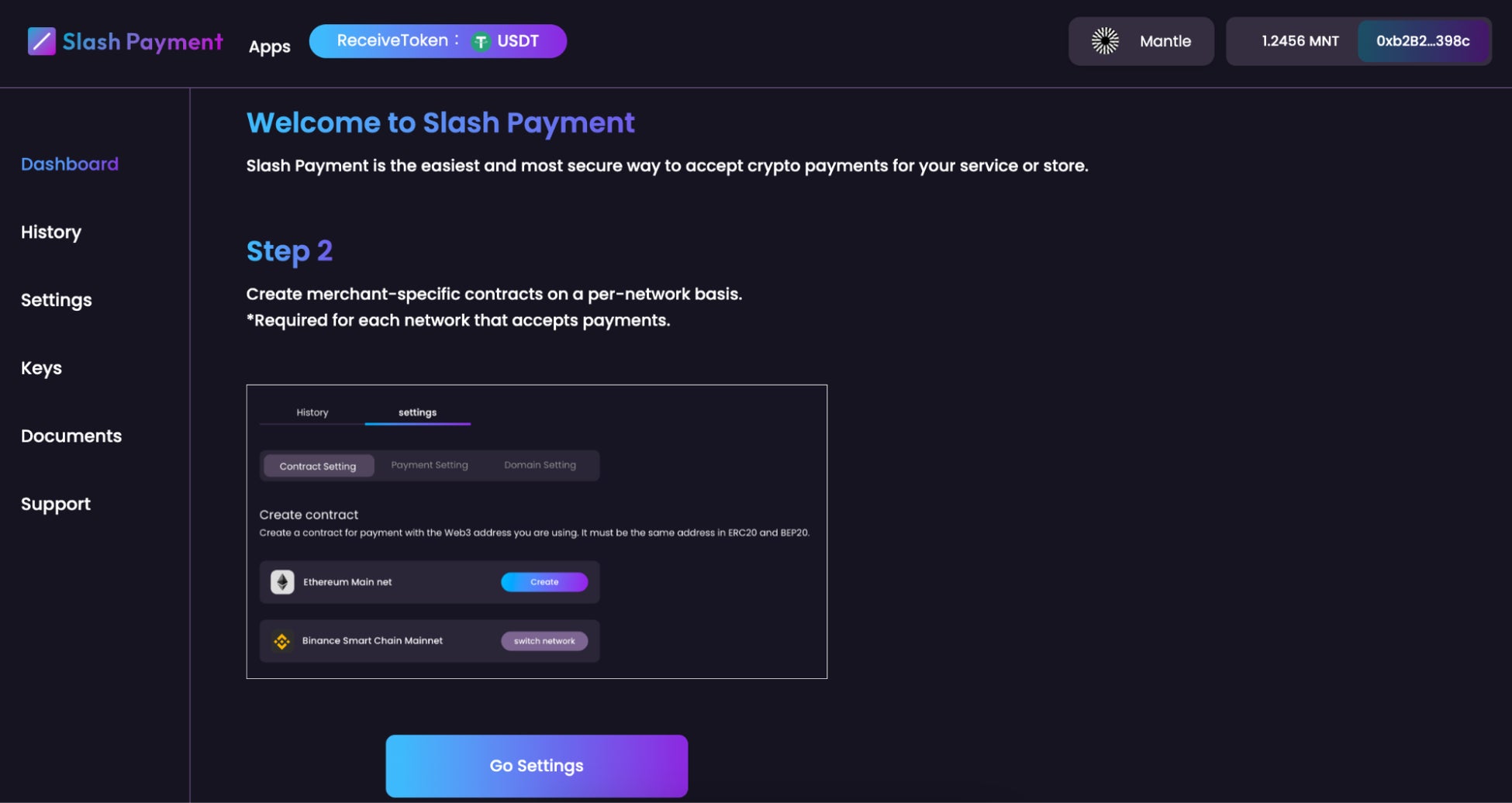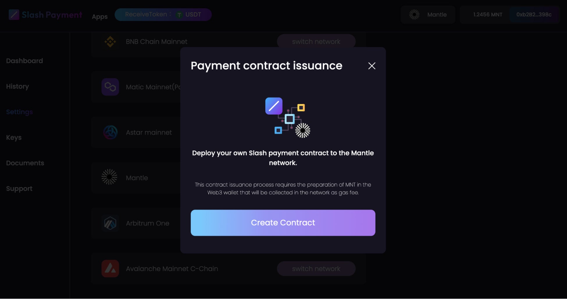 Slash Fintech Limitedは、暗号資産決済「Slash Payment」の提供を2022年8月より開始しました。導入店舗は暗号資産ウォレットでログイン後、売上受取の設定を4種類のステーブルコインから選択し、コントラクトの発行を行うだけでQRコード/APIの利用が可能です。現在は、Ethereum、BNB Chain、Polygon、Avalanche、Astar、Arbitrum One、Optimism、Mantleの8種類のブロックチェーンに対応しており、オンラインサービスとのOATマーケティング連携などを通じて、より実用的なブロックチェーンビジネスの展開をサポートしています。