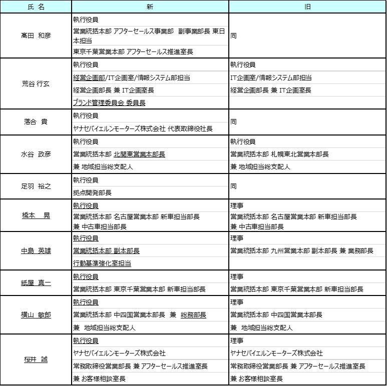株式会社ヤナセは、2024年3月22日開催の取締役会において、2024年4月1日以降の役員人事について下記の通り決定しましたのでお知らせします。