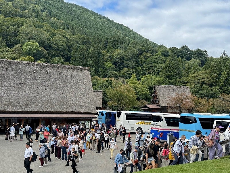 2024年の白川村観光統計によると、年間約200万人の日帰り観光客の来村があり、うち約48.4%(約97万人)がツアーバスを利用しています。さらに、国内外の観光需要拡大によって、観光客数は増加傾向にあり、世界遺産集落内の混雑が課題となっています。