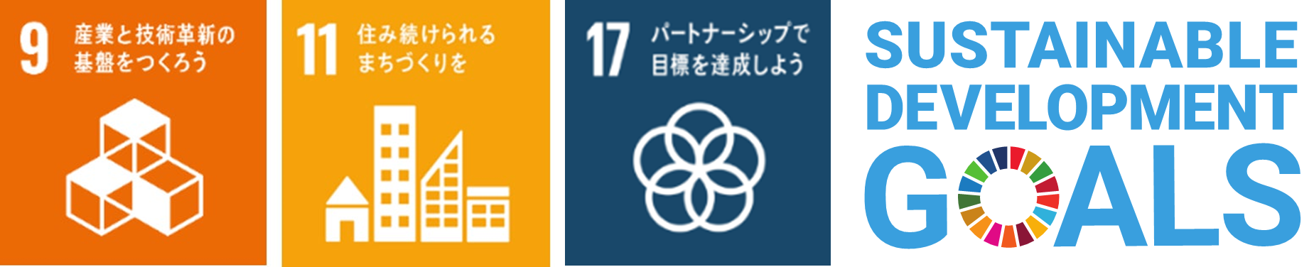 目標9 産業と技術革新の基盤をつくろう 目標11 住み続けられるまちづくりを 目標17 パートナーシップで目標を達成しよう |