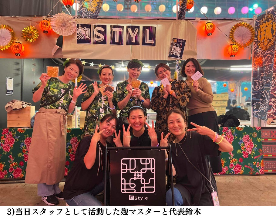 麹Styleが「えんとつ町の"踊る"ハロウィンナイト」に出店するきっかけとなったのは、京都在住の麹マスター井上美由紀さんが代表鈴木へ相談を持ちかけたことがきっかけでした。本イベントの想いへ賛同し、老若男女問わず内側から整え、笑顔を生み出す麹のすばらしさを、出店を通して一人でも多くの方に知っていただくきっかけにしたい。しかし、一人ではどうしたらよいかわからず困っていた美由紀さん。そんな時、麹Style株式会社の代表鈴木に想いを伝えたところ「麹Styleと協力して一緒に出店しましょう!」と話がすぐに進みました。関西・関東で活動する麹マスターが力を合わせ、一度も経験したことのない規模のイベント出店にむけて「どうしたらお客様に喜んでいただけるか」を考え、準備に励みました。そして迎えた当日、想像を超える世界が広がっていました。一人ではできないことも、おうち麹®で繋がった全国各地の仲間とともに、チャレンジできる環境が麹Styleにはあります。一つの夢を実現した美由紀さんからは自信と喜びに溢れていました。「つぎは何にチャレンジしよう!自分の人生を変えてくれた麹、麹をもっと多くの方に届けたい」と話す美由紀さんの表情からは、ワクワクが溢れていました。麹Styleは、麹のチカラで人々の夢と挑戦を応援し、麹の魅力を多くの方にお届けしてまいります。