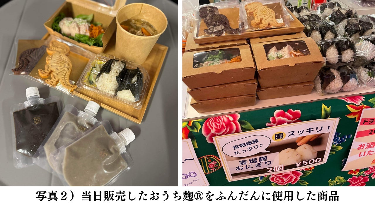 今回のイベントはお子様も多くご参加しております。そこで、お子様にも喜んでもらうべく、麹Styleカフェでも提供している「with Rice麦塩麹」をお米に入れて炊き上げた麦塩麹ごはんのおにぎりを販売いたしました。お子様連れの方から「子どもでも食べられるものを探していたので、おにぎりは嬉しい」とお声を頂きました。ほかにも「最高においしい!」「塩加減が最高!」とお味の面でも嬉しいお声をいただきました。