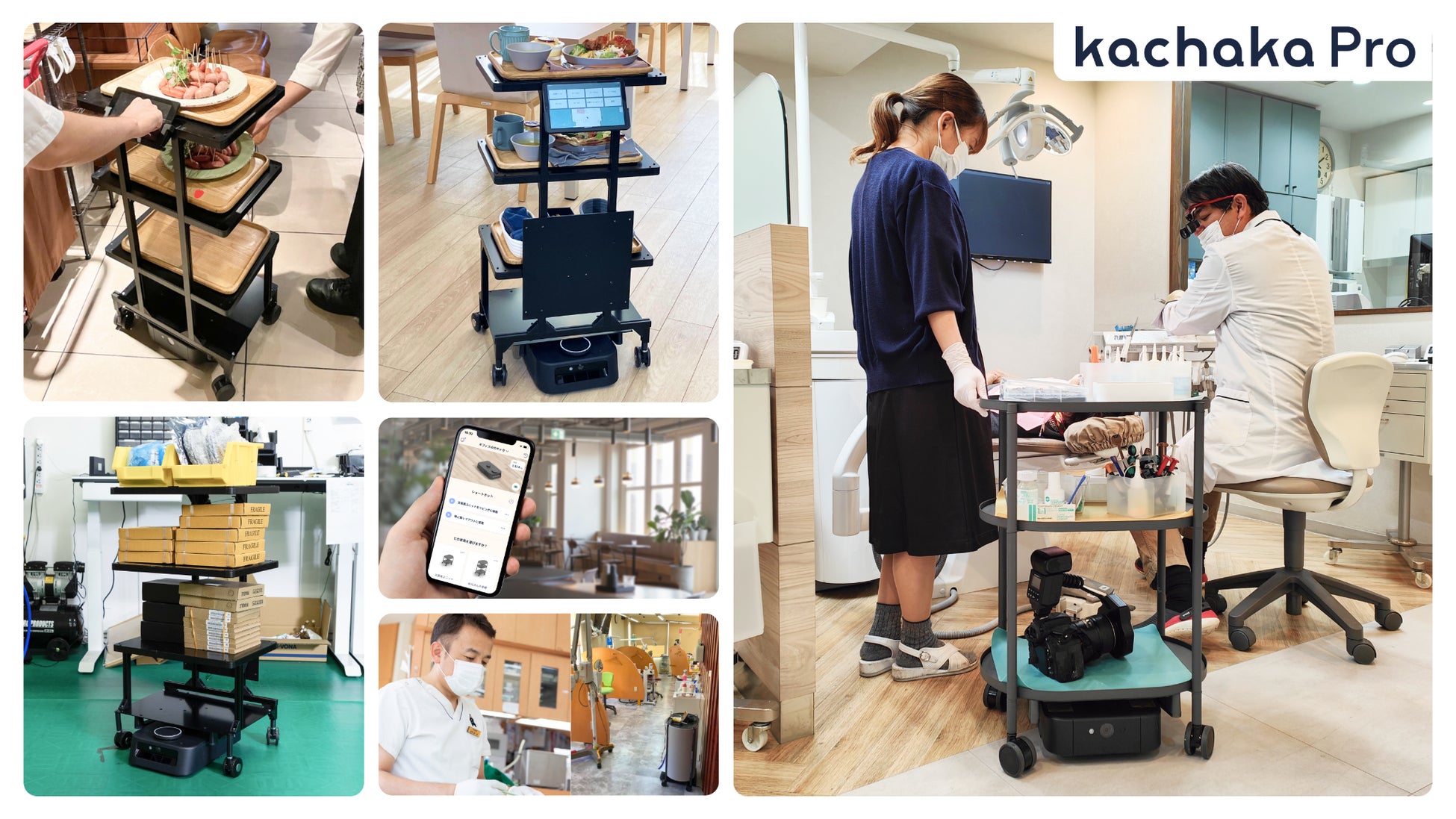 「カチャカプロ」は家庭用の「カチャカ」と同様の高度なAI技術を搭載し、人の指示で専用シェルフなどのキャスター付き「カチャカファニチャー」とドッキングして指定の場所まで移動することができます。家庭用の「カチャカ」は一般的な住居の広さや床面の材質に合わせた仕様ですが、「カチャカプロ」は最大30kgの牽引力を有し、検出距離の長いLiDARを搭載しているため、事業現場の広い空間でも自律移動が可能です。購入にあたっては、リース契約(48ヶ月)も可能で、導入の負担を軽減するための設置サービス(オプション)、ならびに交換・修理に対応するアフターサービスも充実しています。また、同時発売の「カチャカボタン」により、スマートフォンアプリや音声を使用せずにボタンを押すだけで「カチャカプロ」を操作することが可能です。今後は配膳や清掃など特定の用途に合わせたシェルフや機能、ソフトウェアなども順次提供する予定です。