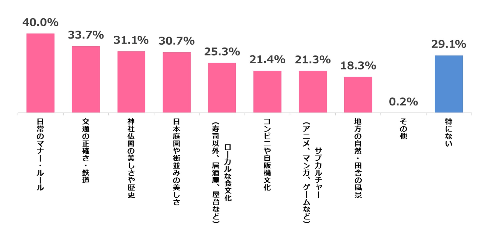 Q. 訪日観光客が増えたことで、改めて日本の魅力だと感じたことを教えてください。(n=1,000、複数回答)