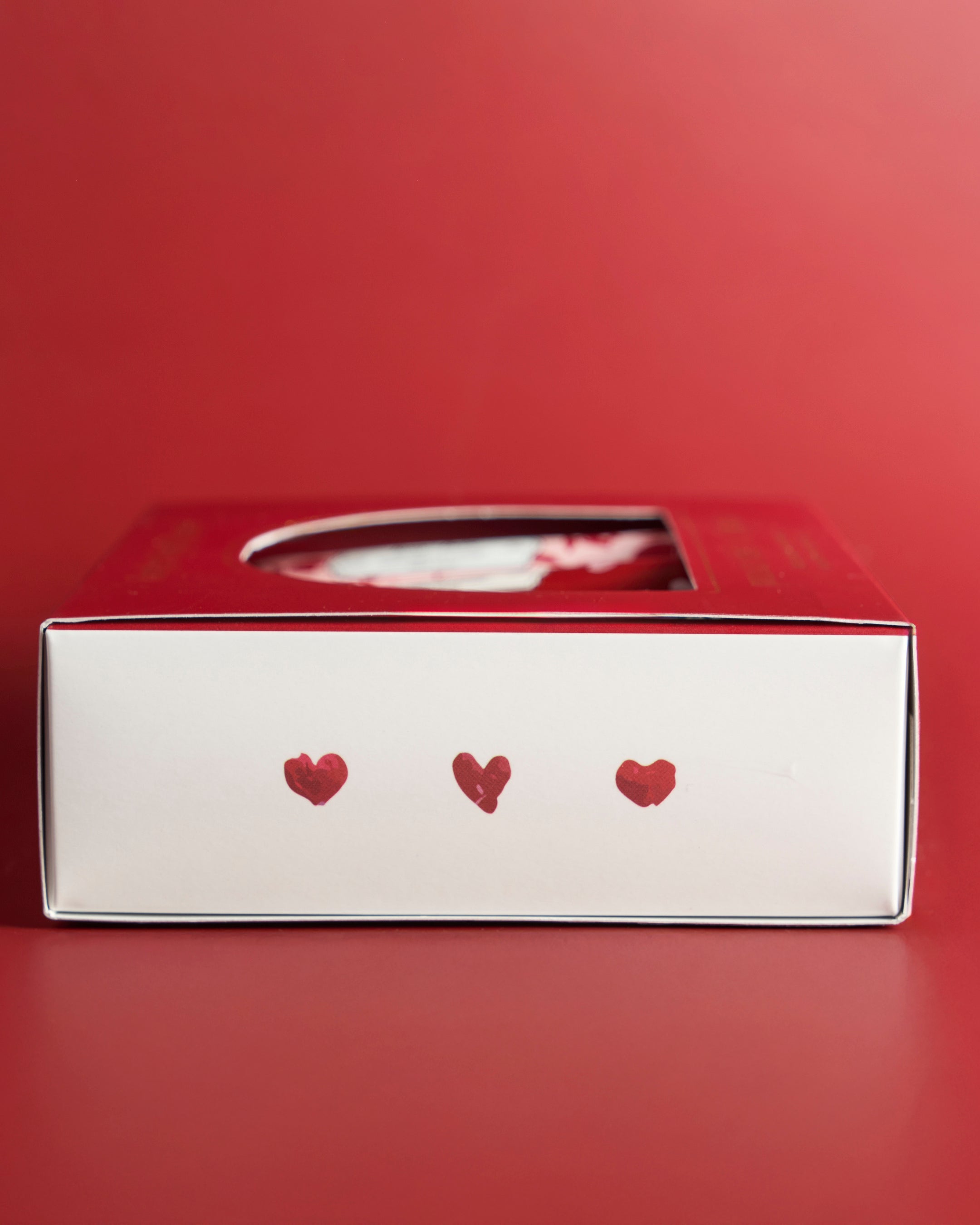 Rosyluceのブランドカラーでもあるレッドにハートをデザインした