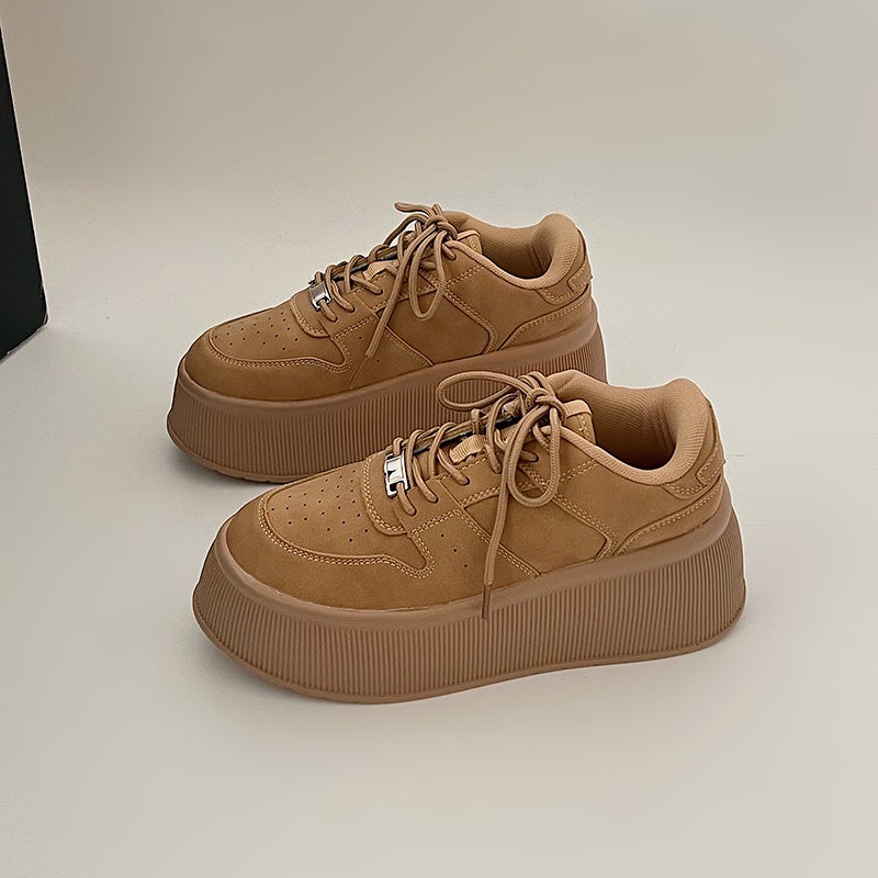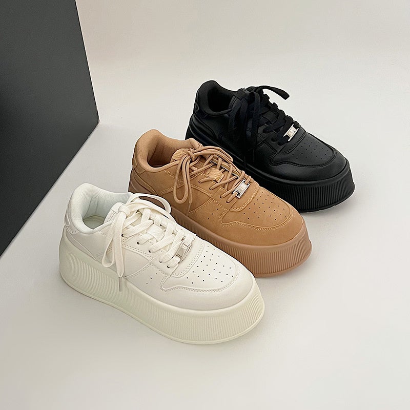 今、このスニーカーがカワイイ!好評販売中のコート系スニーカー「厚底 プラットフォーム プレート付 コートタイプ スニーカー 2428」に新色のベージュが登場!