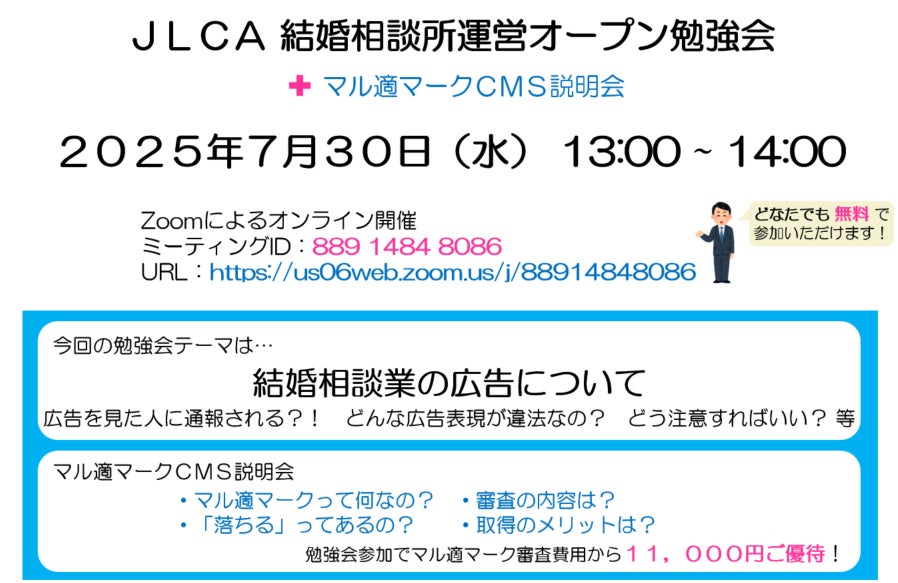 【マル適マークCMS新規認証発行のお知らせ】特定非営利活動法人 日本ライフデザインカウンセラー協会(JLCA)が新たにマル適マークCMSを結婚相談所に発行しました!