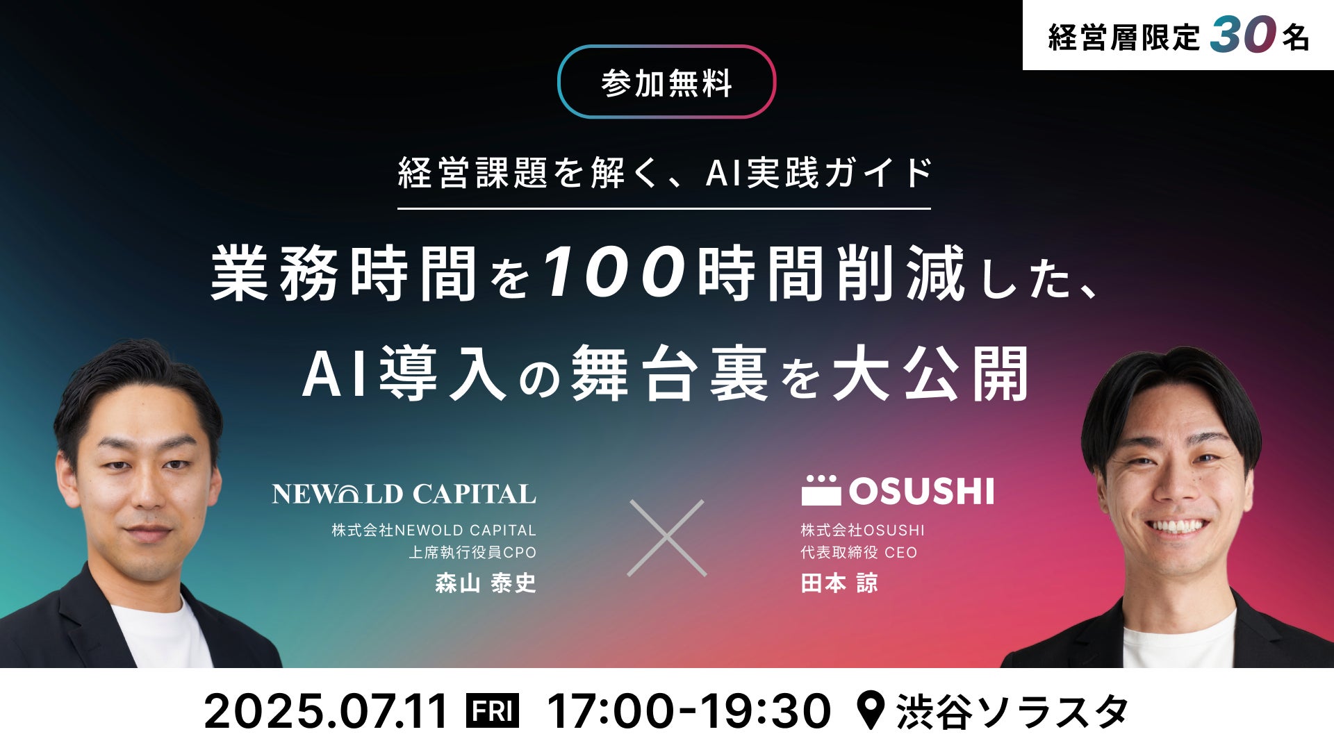 中堅・中小企業向けのM&Aアドバイザリーを主軸として成長戦略の支援をする株式会社NEWOLD CAPITAL(本社:東京都渋谷区、代表取締役CEO:栗原 弘行、以下「当社」)は、このたび社内限定でセキュアな環境で活用できるAIシステム『NEWOLD AI』のPoC(概念実証)に成功いたしました。