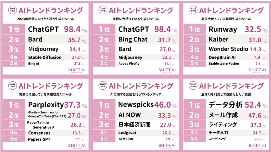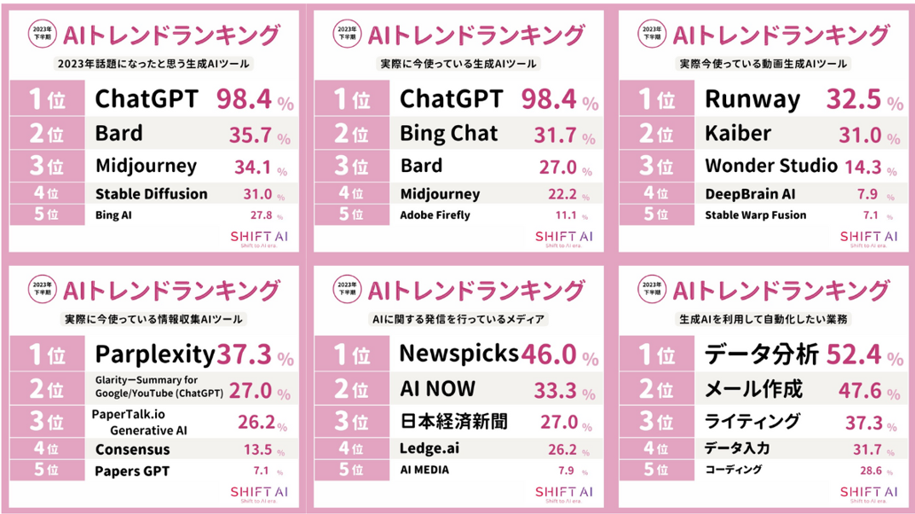 SHIFT AI が『2023年下半期AIトレンドランキング』を発表!ChatGPTが話題を席巻した1年に