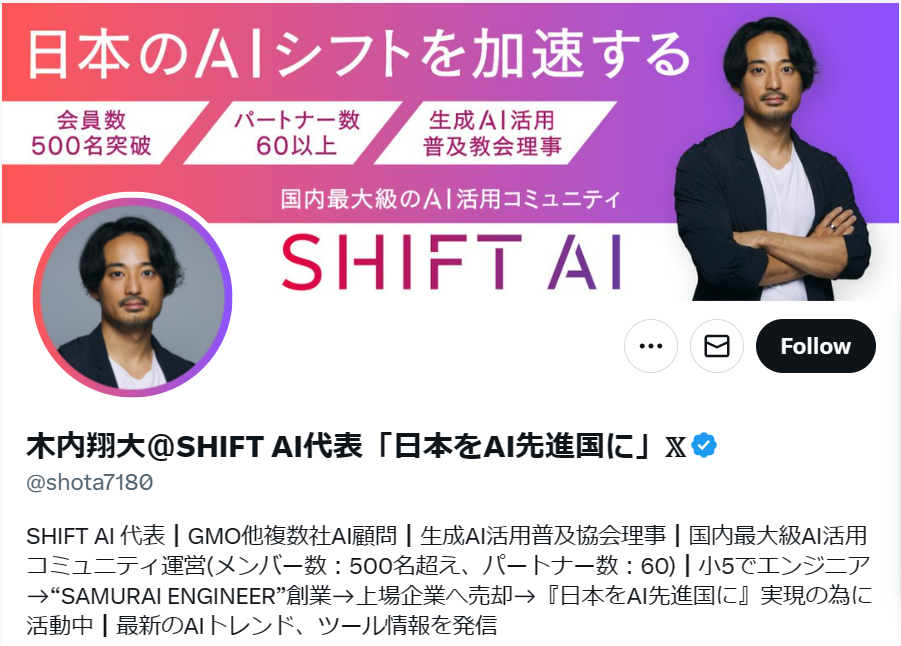 株式会社SHIFT AI 代表取締役 / 一般社団法人生成AI活用普及協会 理事 / GMO AI&Web3株式会社 AI活用顧問