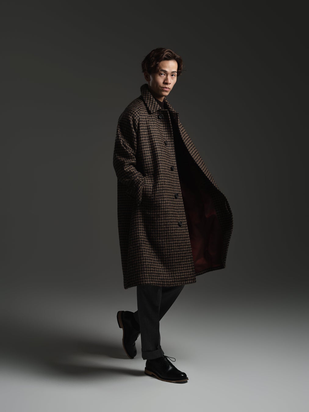 アスリートが私服に着替える瞬間を想像し、麻布テーラーのオーダーコートで構成したスタイリングを制作。サントリーサンバーズ大阪の選手が異なるコートモデルを着用し、王道デザインの振り幅と現代性を表現しました。