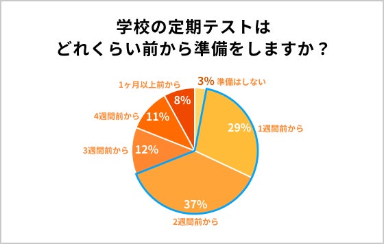 1日あたりの勉強時間がどれくらい増えるのかはわかりましたが、では定期テストに備えてどれくらい前から準備を始めているのでしょうか?