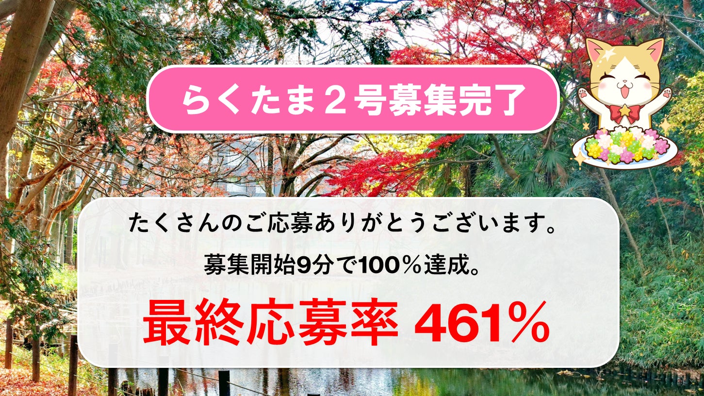 らくたま1号・2号では、いずれも応募超過となり、多くの方に出資機会をご提供できなかったことを踏まえ、『らくたま』では早急に、新規ファンド3号・4号の組成を決定いたしました。