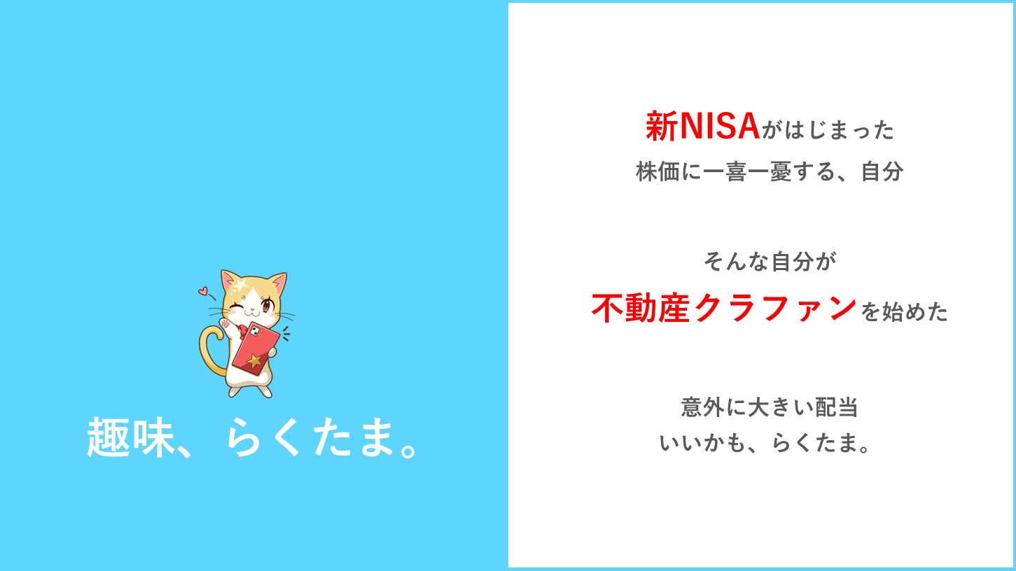 『らくに、たまる』をコンセプトに、不動産知識や投資経験が少ない方でも、1万円から安心して楽しく参加できるファンドの組成を目指します。『らくたま』はいつでも「お客様ファースト」を考えています。
