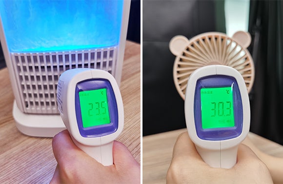 邪魔にならないコンパクトサイズで机の上、脱衣所やトイレ、キッチンなどの狭い場所でも使用可能です。優しい冷気で涼感を得られ、顔や身体を心地よく冷やしてくれます。