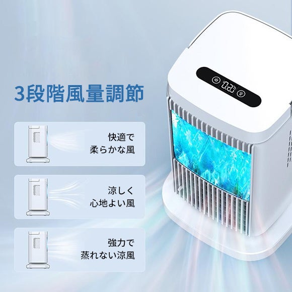 パワフルな冷却能力で、氷と水を入れなくても強い冷風が出ます。低騒音設計で仕事中や就寝時にも快適に使えます。コンパクトサイズで持ち運びがスムーズにでき、設置場所を選ばず夏を涼しく過ごせます。