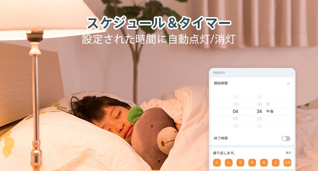 決まった時間に照明が自動的にオン・オフできます。即消灯だけではなく、フェードインとフェードアウト機能が付いており、就寝時に明るい色から、徐々暗くなることができます。ストレスを解消し、間接照明 で柔らかく快適な光の空間が作り、リラックスできる睡眠環境を構築しましょう。