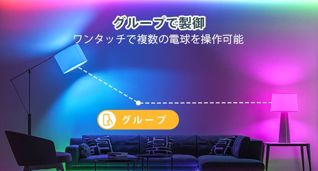 スマート電球とは、目に優しく、安定して作動するスマートLED電球です。声やスマホでおうちの照明を簡単にコントロールすることが実現!使用シーンにあわせてライトの明るさ、色温度、カラーを自由に調節可能です。