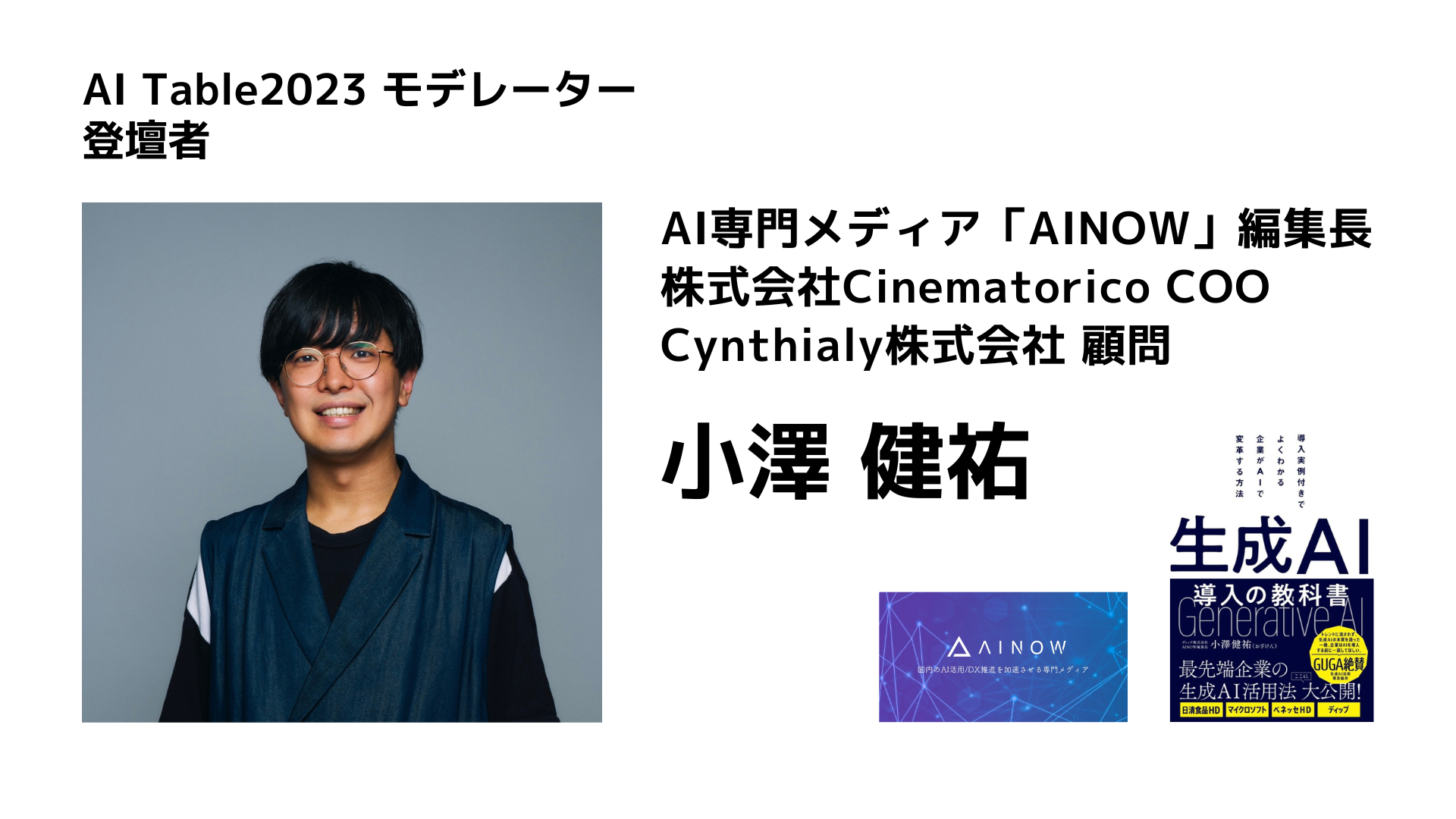 生成AI教育企業Cynthialy代表の國本・⼩澤がAI・⼈⼯知能 EXPOで開催・AINOW主催の“AI TABLE 2023”に登壇