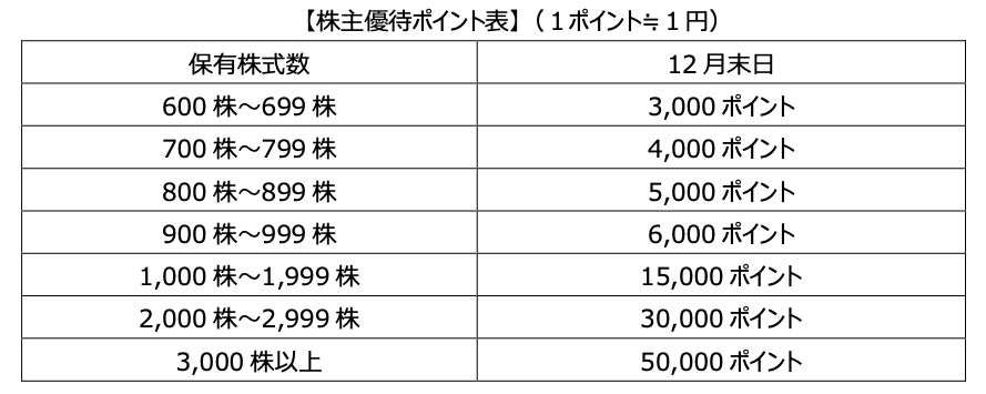 繰越条件:ポイントは12月末日において株主名簿に同一株主番号で連続2回以上記載され、かつ600