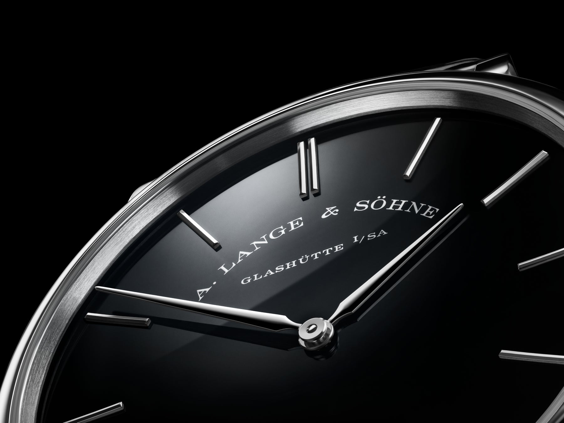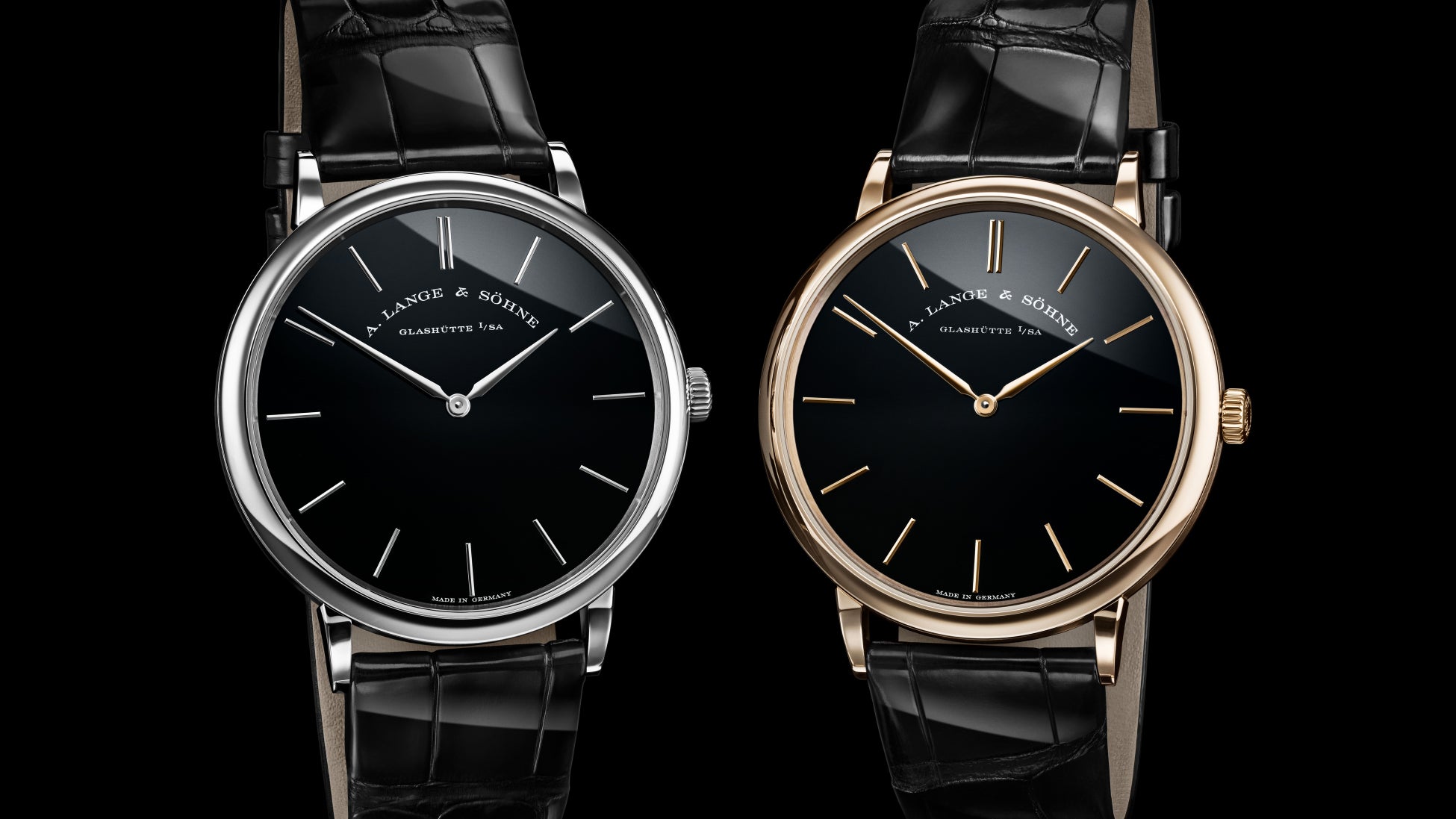 時と分の表示という本質的な機能のみに特化したモデル「サクソニア・フラッハ」からジェットブラックのオニキスダイヤルを備えたハニーゴールド(HONEYGOLD®)・プラチナ、二つのモデルが限定で発売。