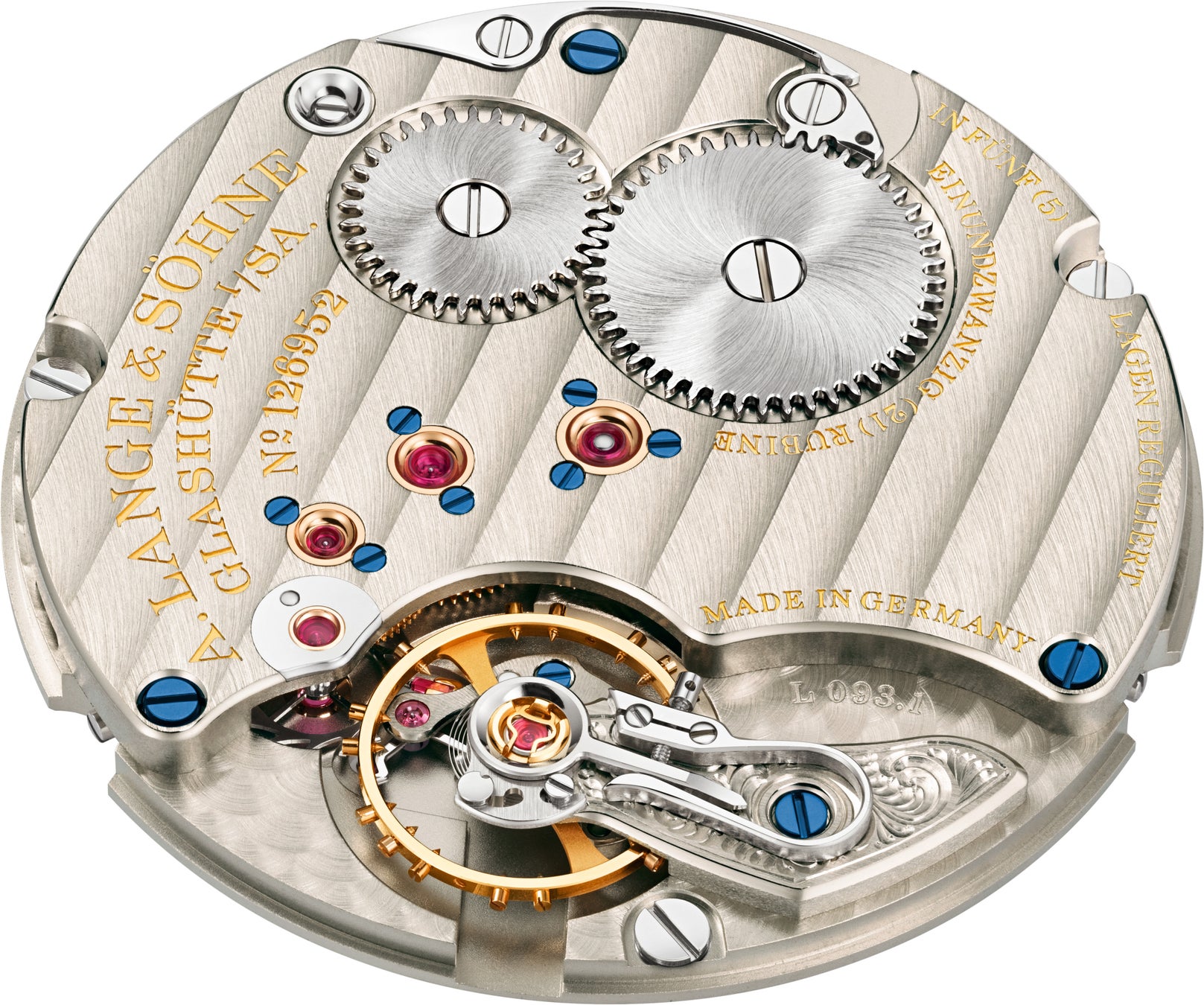 ランゲのすべてのタイムピースと同様に、サクソニア・フラッハには専用の自社製ムーブメントが搭載されています。時計製造におけるランゲの最高水準の技術によって仕上げられた手巻きムーブメントは、サファイアクリスタルのケースバックから眺めることができます。厚さわずか2.9 mmの自社製キャリバーL093.1の技術的特徴にはフラットなツインバレルが挙げられ、コンパクトな設計でありながら72時間ものパワーリザーブを提供します。