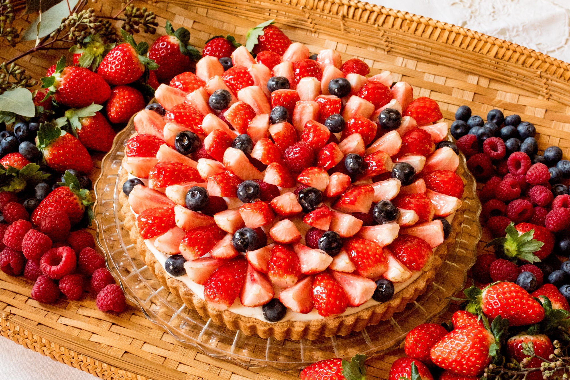 静岡生まれの“きらぴ香”を使用した、イチゴの華やかな香りいっぱいのタルトをつくりました。サワークリーム入りのカスタードに自家製ジャムを加え、大粒の“きらぴ香”で飾りました。たっぷりのイチゴとクリームの組み合わせは、何度でも食べたくなる味わいです。