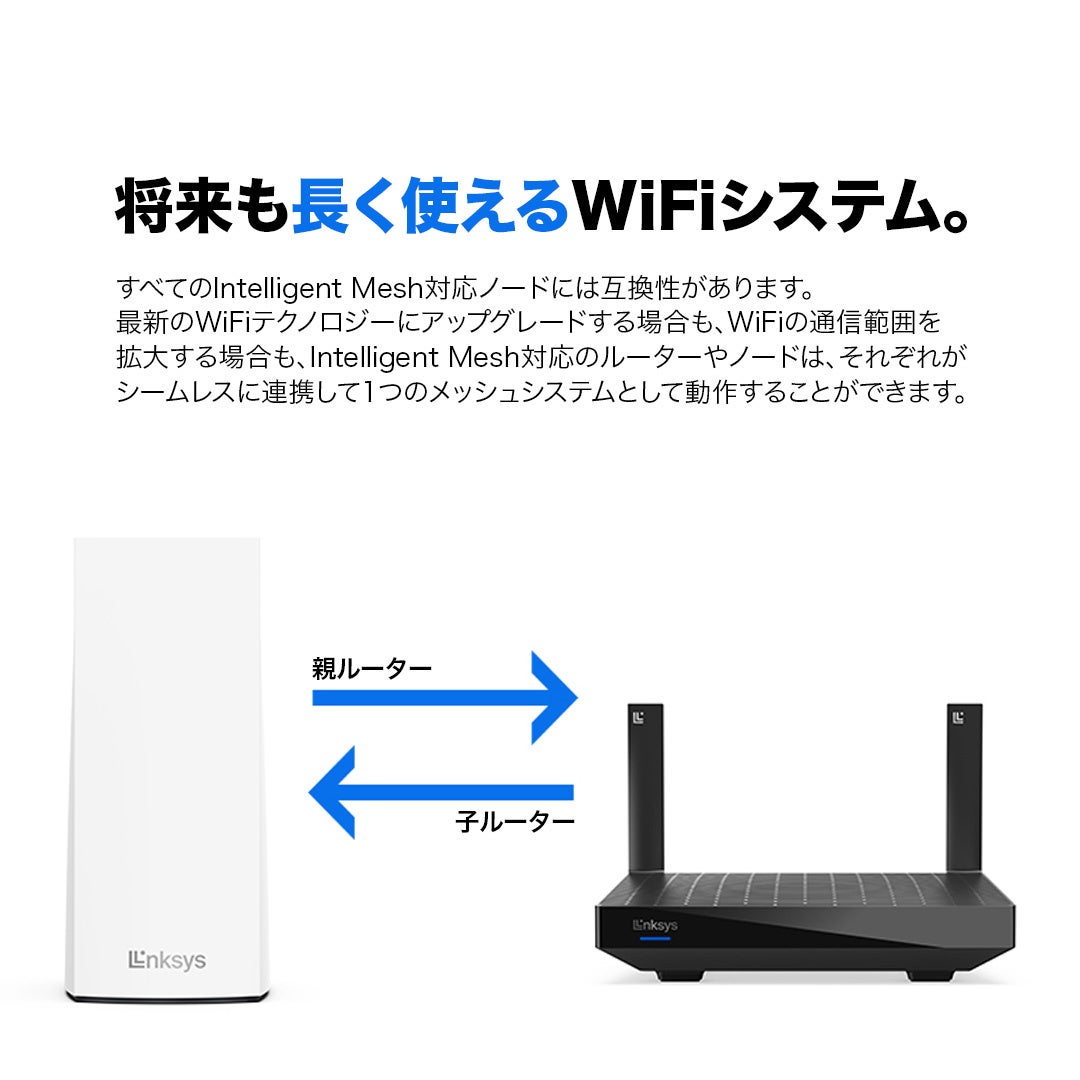 コロナ禍を経て、自宅がリモートワークやオンライン授業、エンターテイメントの拠点となったことで、信頼できるWiFiネットワークの重要性はこれまでになく高まりました。優れた信頼性と通信範囲を誇るLinksysのメッシュWiFi 6システムなら、こうしたネット経由の活動を安全かつ確実に行うことができます。ホームネットワークに対する要求が拡大している現在、LinksysのメッシュWiFiルーターおよびシステムは、進化するニーズに対応できる安定した高速インターネット環境を提供することで、接続の問題を解消するだけでなく、人々の生活全体の質の向上にも貢献しています。