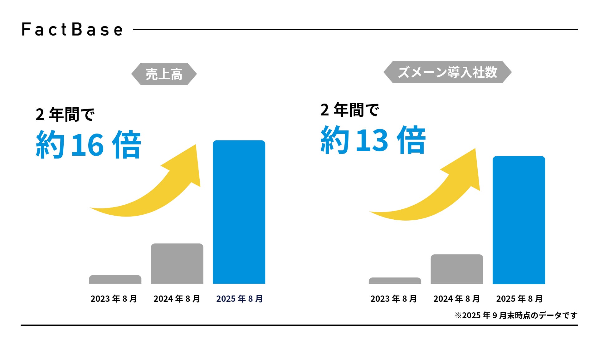 こうした背景の中、Fact Baseは図面管理システム「ズメーン」を通じて、設計から調達・製造に至るまでの情報共有と受発注プロセスを効率化し、町工場をはじめとした中小製造業の課題解決に取り組んできました。その結果、売上高はこの2年間で約16倍に拡大し、導入社数も約13倍に増加。日本を含む12カ国に広がり、グローバルでのプレゼンスを着実に高めています。