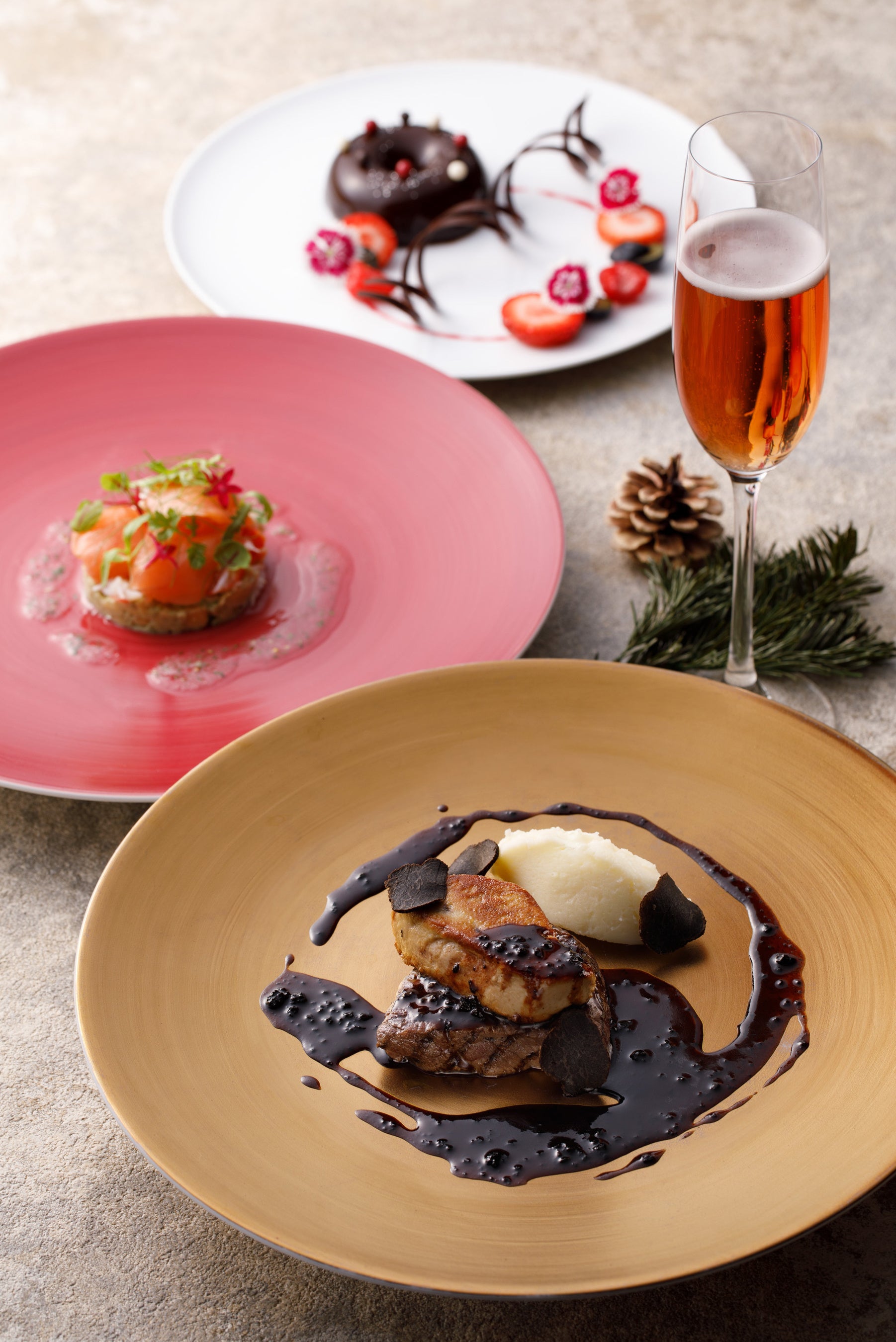 料金:クリスマスディナーコース 18,000円 / ワインペアリング 7,000円 / ノンアルコールドリンクペアリング 5,000円