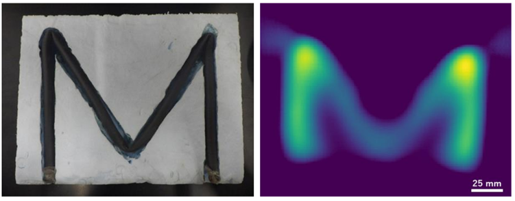 開発した磁気粒子イメージング装置(試作機) 本装置で撮像した画像