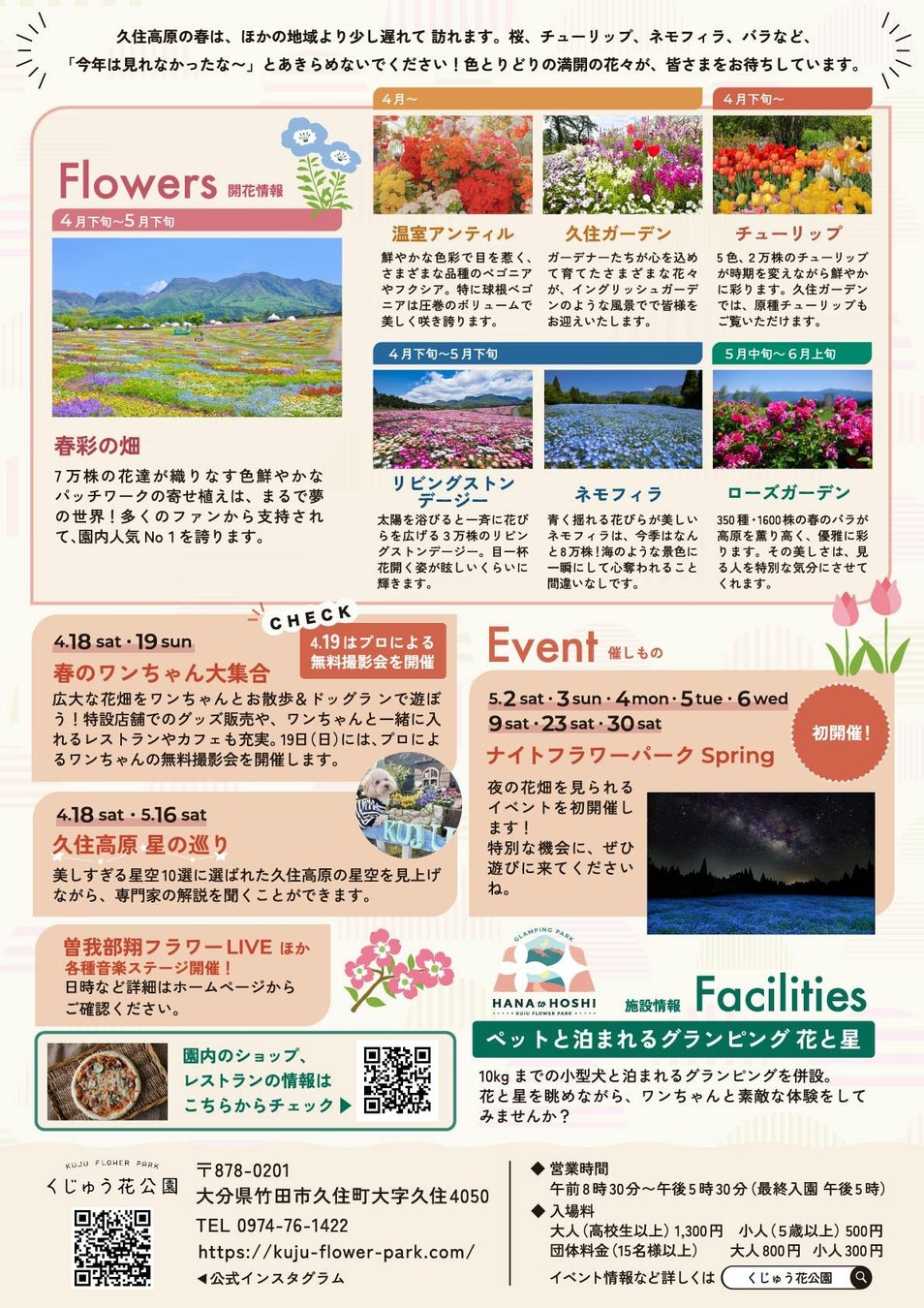 詳細は「くじゅう花公園」ホームページ、公式Instagramをご覧ください