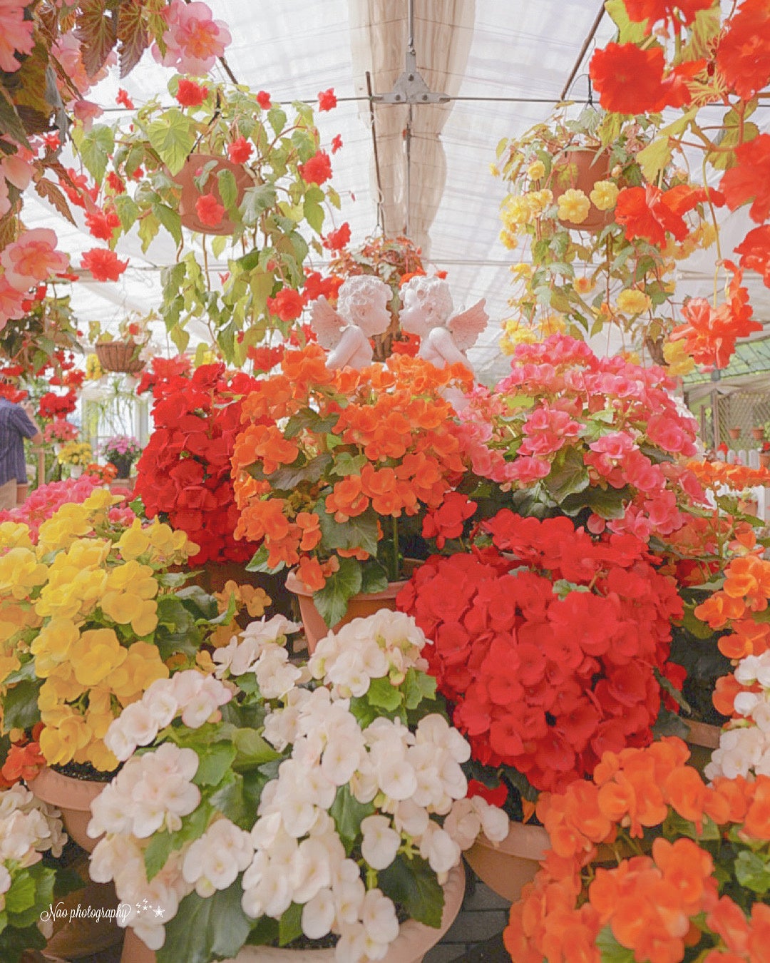 様々な品種のベゴニア、フクシアの鮮やかさが目を惹きます!球根ベゴニアは圧巻のボリューム。