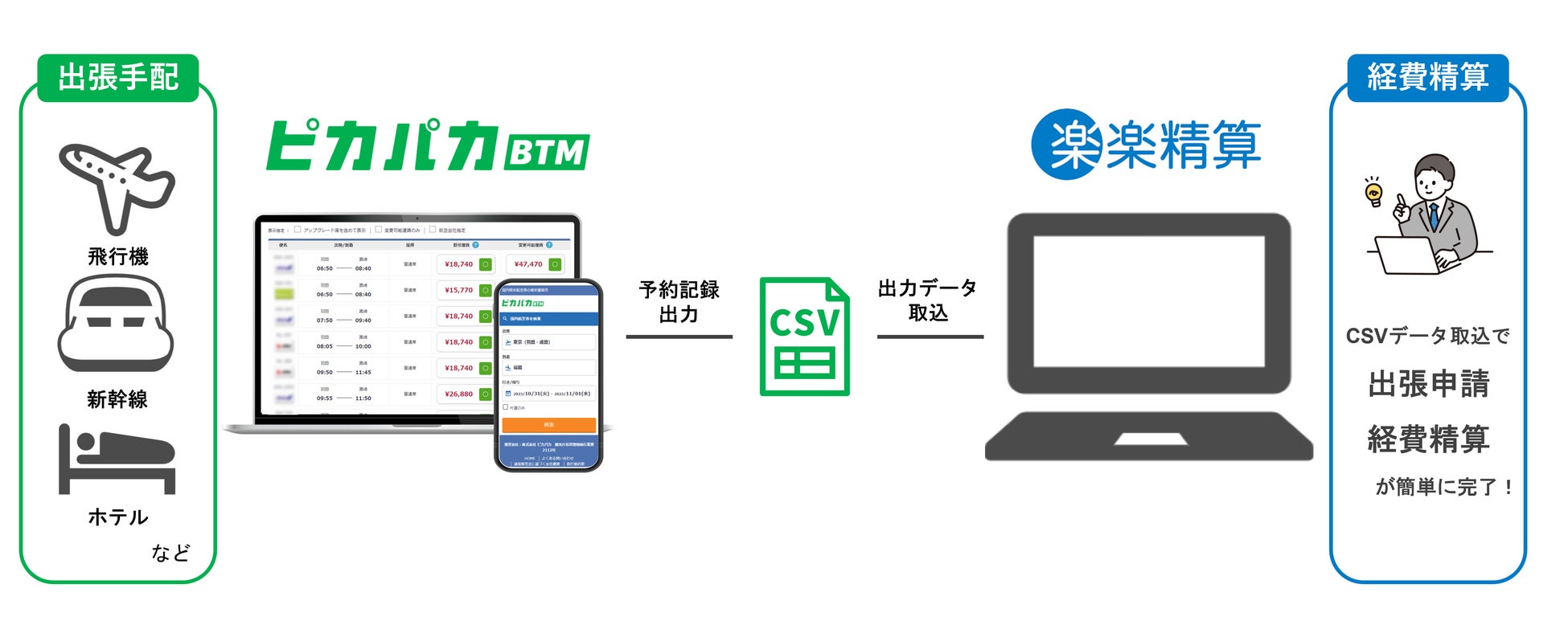 クラウド型法人出張サポートサービス「ピカパカBTM」がクラウド型経費精算システム「楽楽精算」との連携を開始