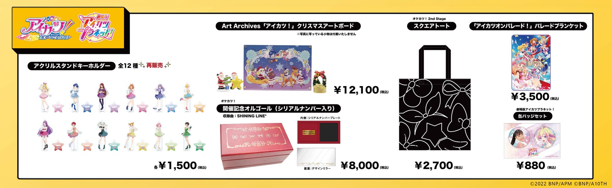 「Art Archives『アイカツ!』クリスマスアートボード」「オケカツ!2nd Stage スクエアトート」「『アイカツオンパレード!』パレードブランケット」などが登場。