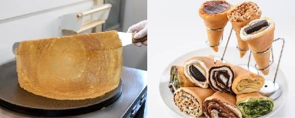 和菓子の生地をヒントにしたオリジナルブレンドのクレープ粉。仕上げには優しい甘みのはちみつ入り調味料を加え、創業当初から変わらないこだわりの生地になっています。