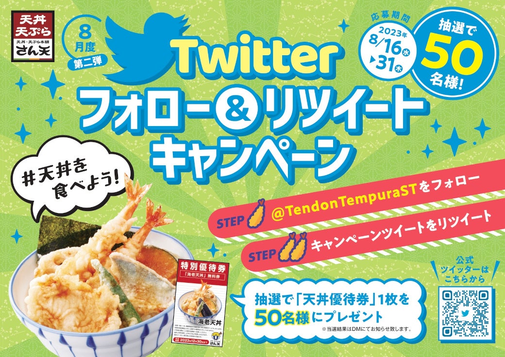 ・【天丼・天ぷら本舗 さん天】公式Twitterをフォロー(@TendonTempuraST)