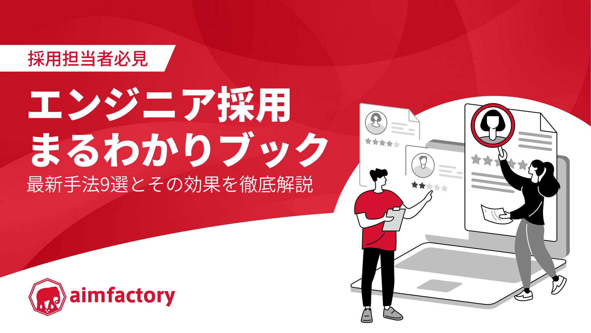 アイムファクトリー株式会社(本社:東京都港区、代表取締役:久利 可奈恵)は、エンジニア採用の最新手法9選を徹底解説した『エンジニア採用まるわかりブック~最新手法9選とその効果を徹底解説~』を公開いたしました。