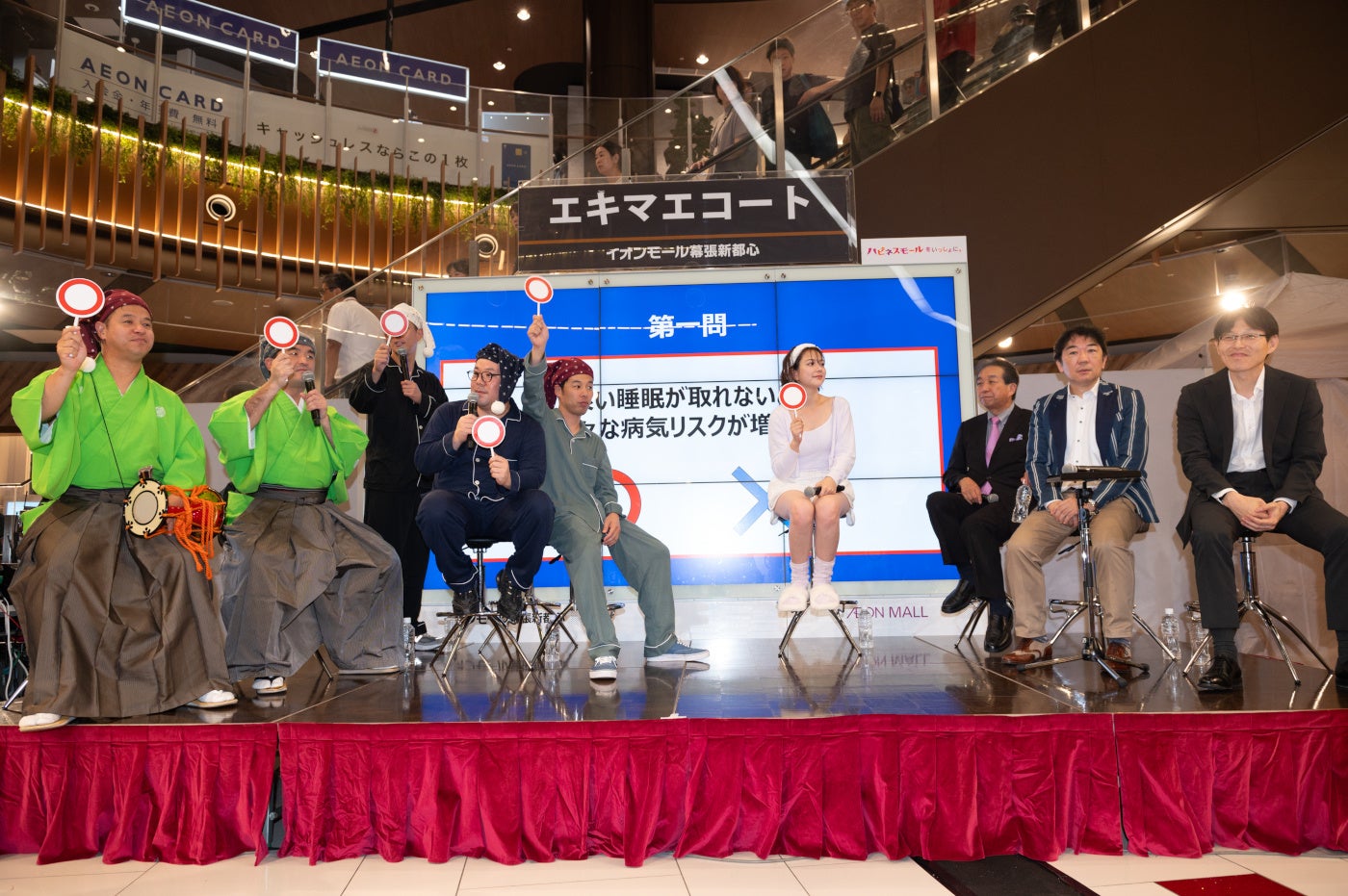 ゲストの3組に加え、観客も〇×クイズに参加し、会場一体となって盛り上がりました。正解発表後は睡眠に関する専門家から詳しい解説もありました。