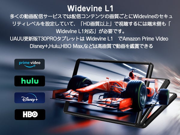 動画配信サービスが対応デバイス(例えば:Netflix)に制限をかけている場合はwidevineL3の画質になる場合があります。ご了承くださいますようお願い申し上げます。