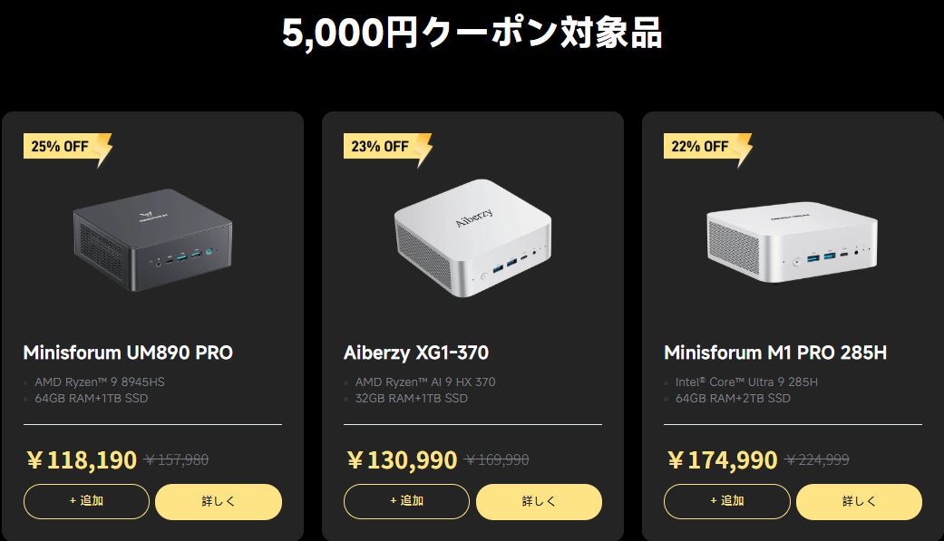 詳細 :https://www.minisforum.jp/pages/black-friday-2025