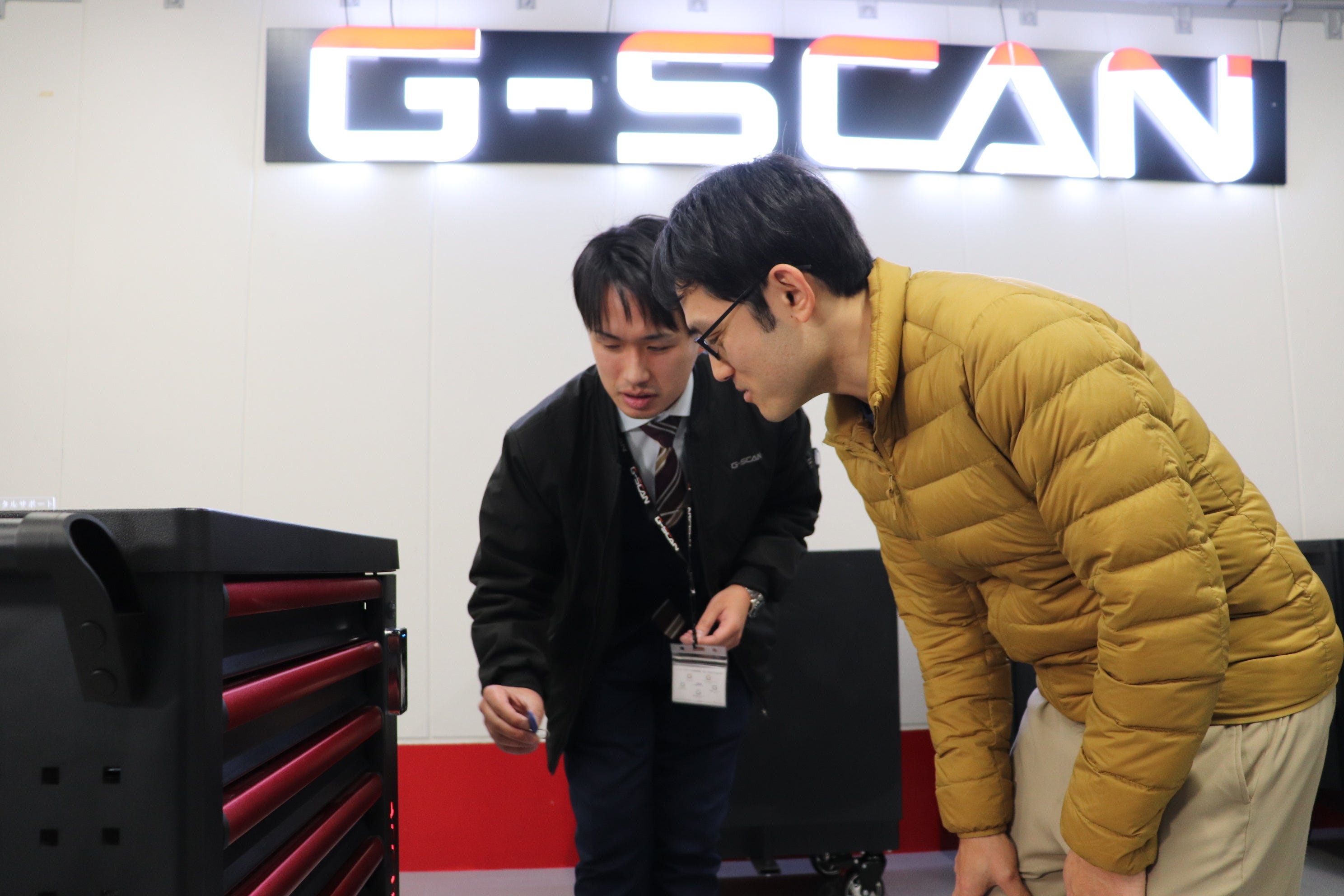 研修後はG-SCANとG-TRAININGに関してインフルエンサーにお話いただき、その様子を撮影(後日配信予定)。G-SCANは普段の作業で使っていただいているので実務的なコメントであり、G-TRAININGに関しても「整備士なら絶対に受けるべき内容の研修会」と整備士目線で高く評価していただきました。