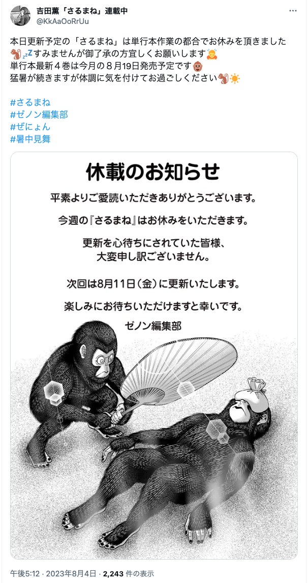 作者 吉田薫 も発売告知と共に暑中見舞をツイート!!