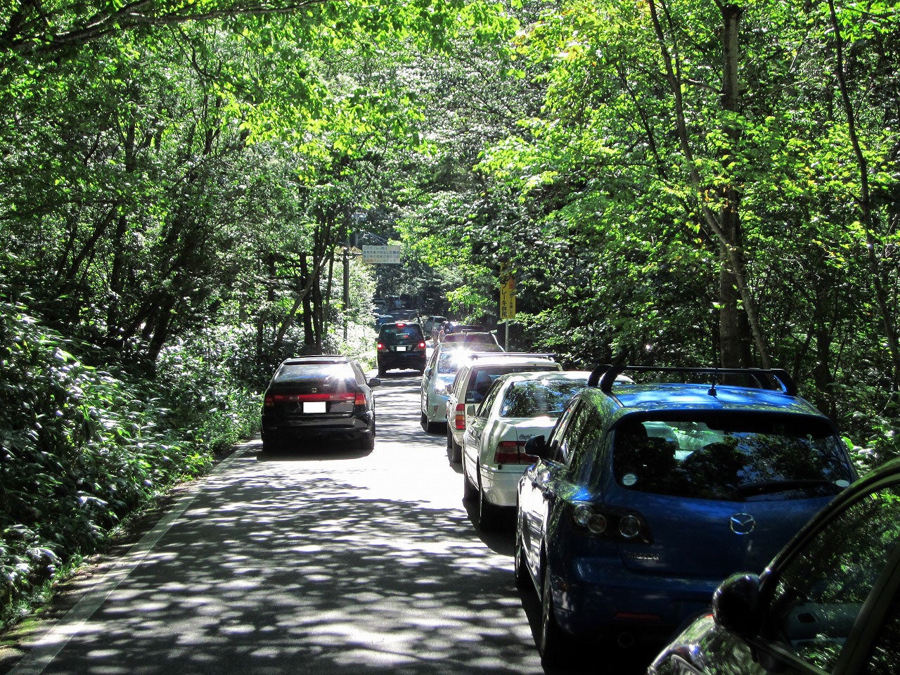 夏山シーズン(6〜10月)には非常に多くの登山者が安曇野市を訪れ、マイカー利用の登山者の多くが登山口周辺の登山者駐車場を利用します。しかし、駐車台数が限られている登山口駐車場の満空状況が分からず、満車で登山者駐車場に駐められなかった車による路上駐車や渋滞が発生しています。登山口周辺への環境負荷、物損事故の発生、登山者の満足度低下などオーバーツーリズム問題につながっています。