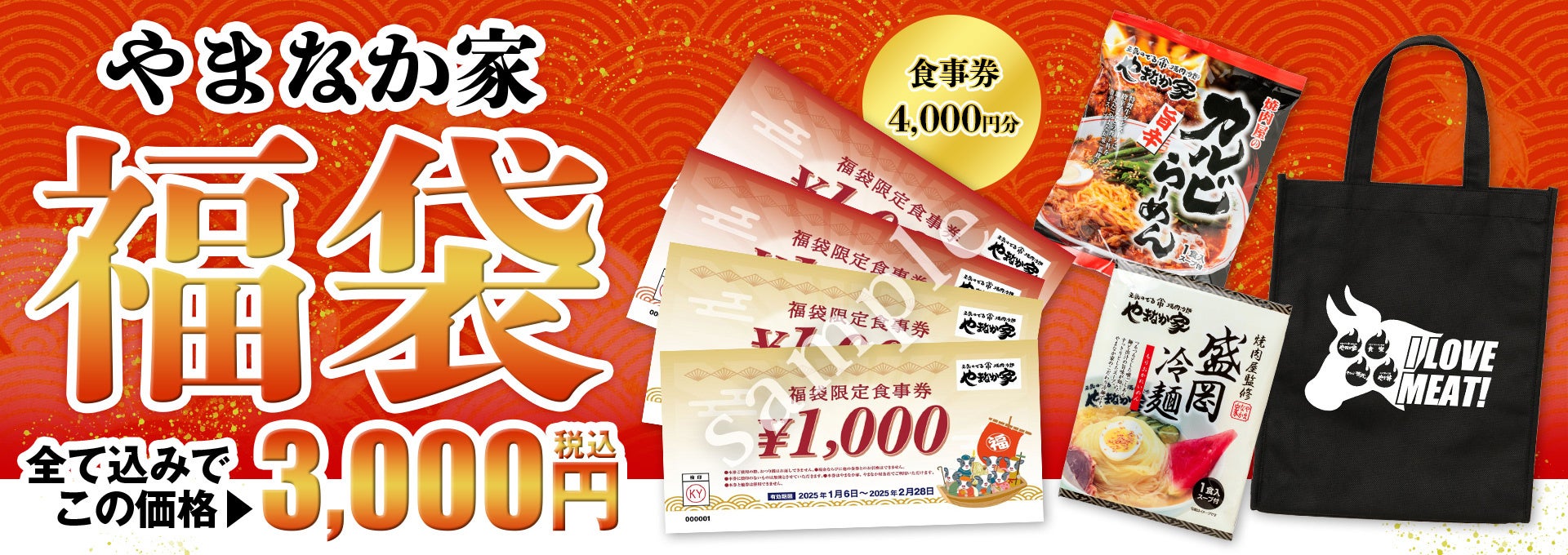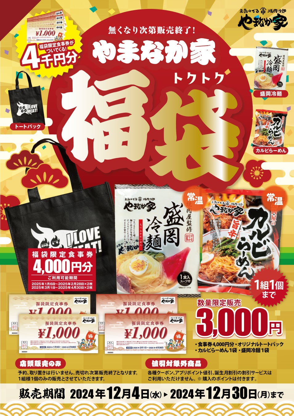 売り切れ必至!【焼肉冷麺やまなか家 福袋2025】12/4(水)販売開始