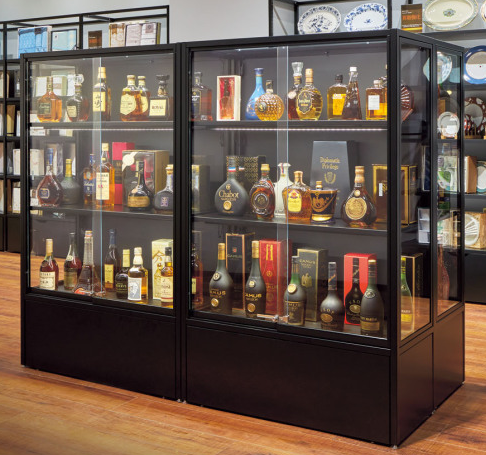 グロッサリー売り場を想定し、商品陳列・展示におすすめの什器を紹介します。昨年夏に発売した「ラテラルショーケース」は、コストパフォーマンスとシンプルな意匠性が評価され、幅広い業種で導入が進んでいます。今回は新色を交え、リカー売り場を想定した展示も予定しています。