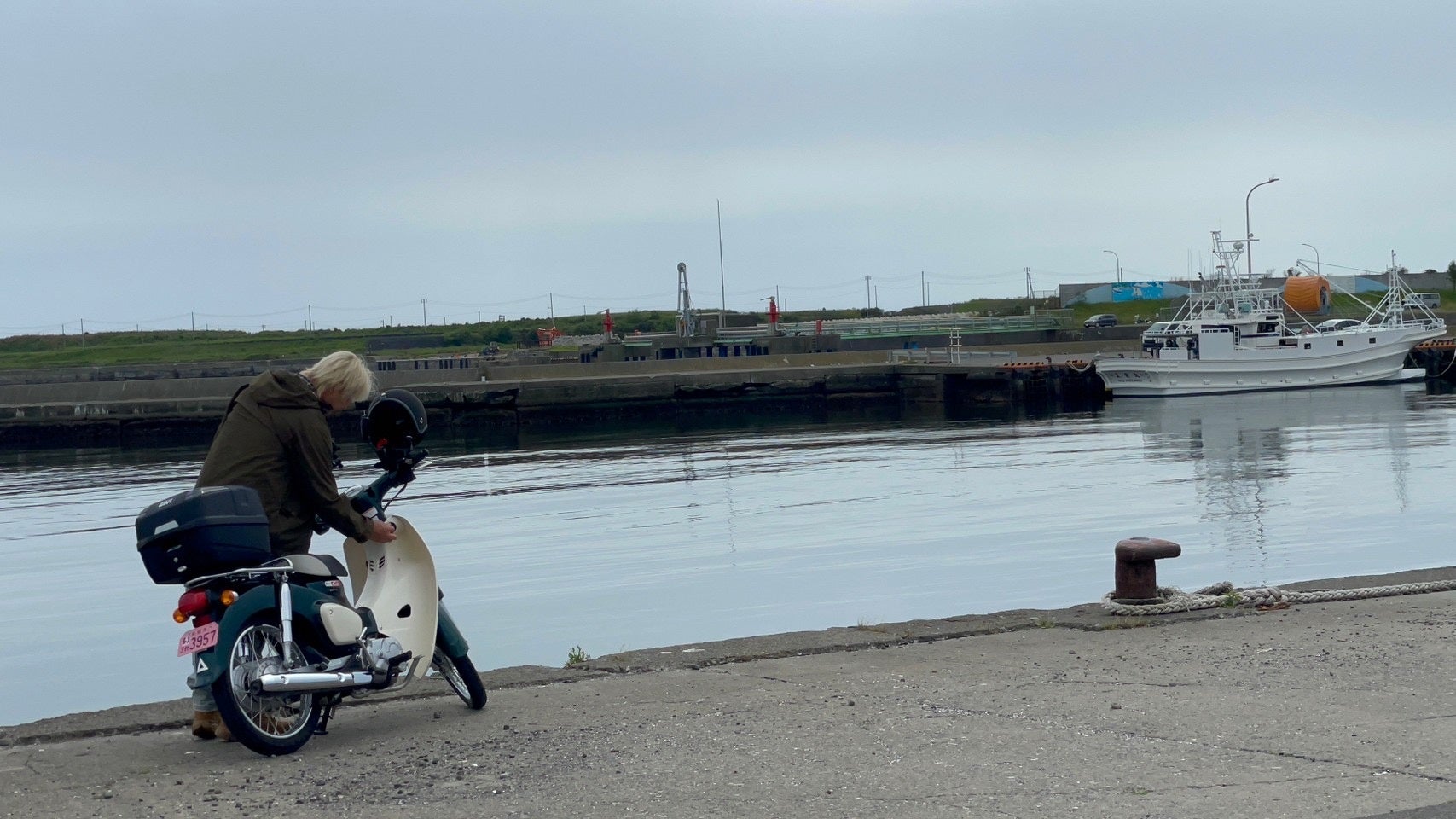 再び走り出したヒロシは、苫小牧の港で釣りに興味を抱くも、空腹に導かれ昭和の香りが漂う食堂へ。食事を終えスーパーカブにまたがったヒロシが、「人生、わからんもんよね」としみじみと語り出す。その後は、釣具店へ向かい、道具を揃えてカレイ釣りに挑戦することに。