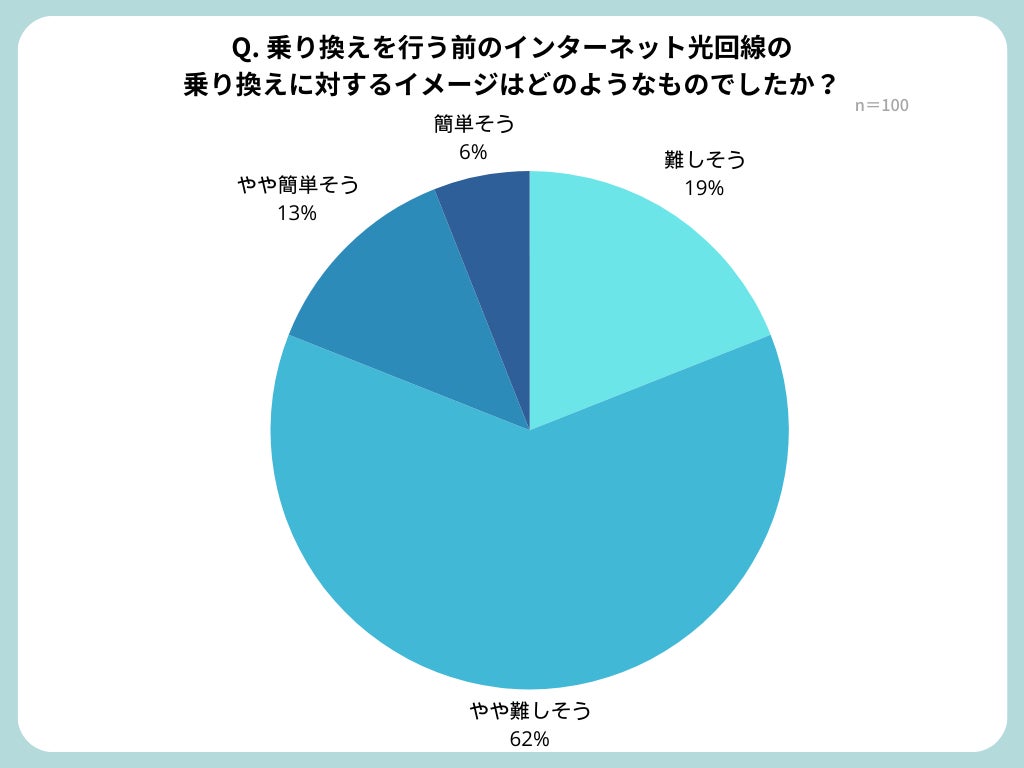 乗り換えを行う前の光回線の乗り換えのイメージについては、難しそう、やや難しそうと回答した方が、合計して全体の81%を占めました。