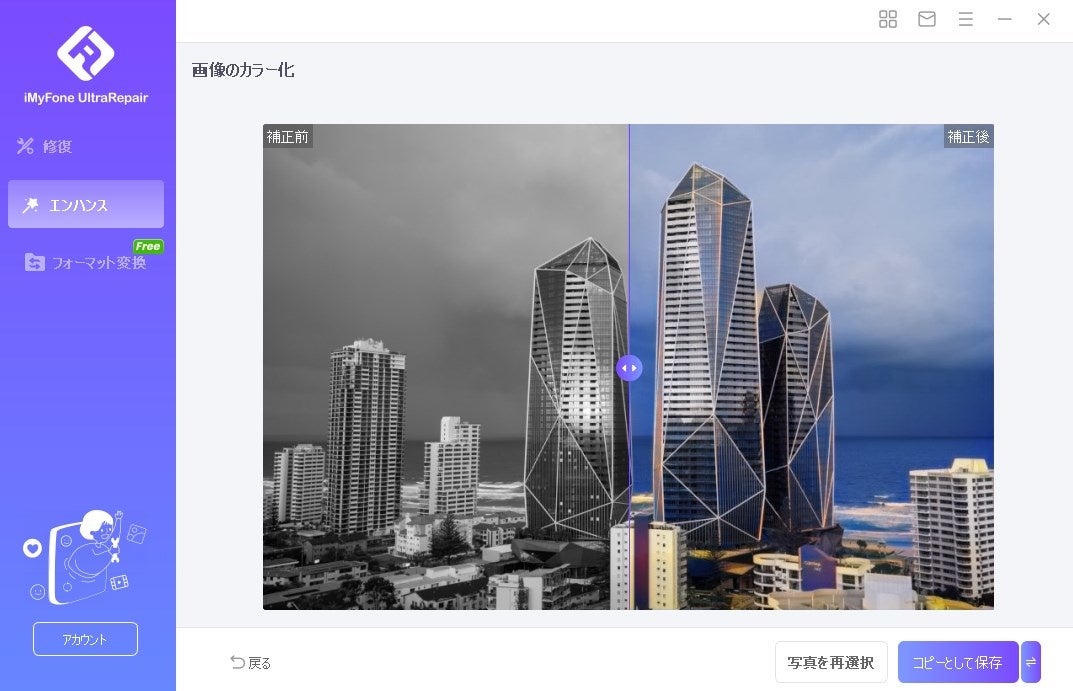 UltraRepairは最先端の技術を備えて、自動的に白黒の画像を認識し、インテリジェントに色を塗りつぶして画像を鮮明にする機能が追加されます。
